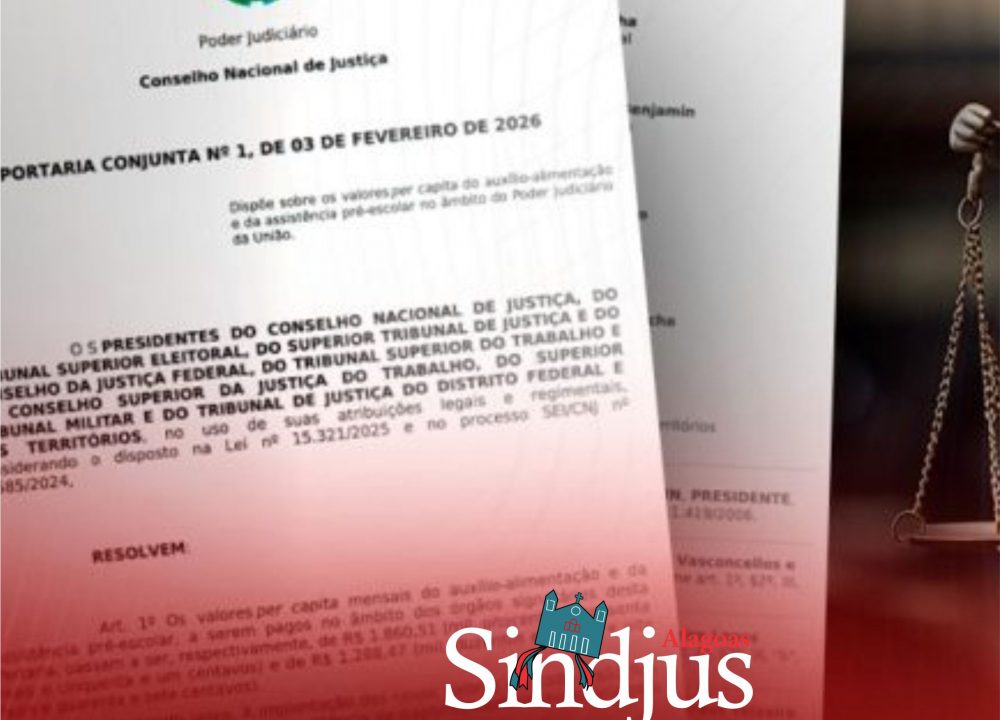 A Portaria Conjunta nº 1/2026, que reajusta os valores do auxílio-alimentação e da assistência pré-escolar dos servidores e servidoras para R$ 1.860,51 (mil, oitocentos e sessenta reais e cinquenta e um centavos) e R$ 1.288,47 (mil duzentos e oitenta e oito reais e quarenta e sete centavos), respectivamente, foi publicada, no dia 3 de fevereiro.
